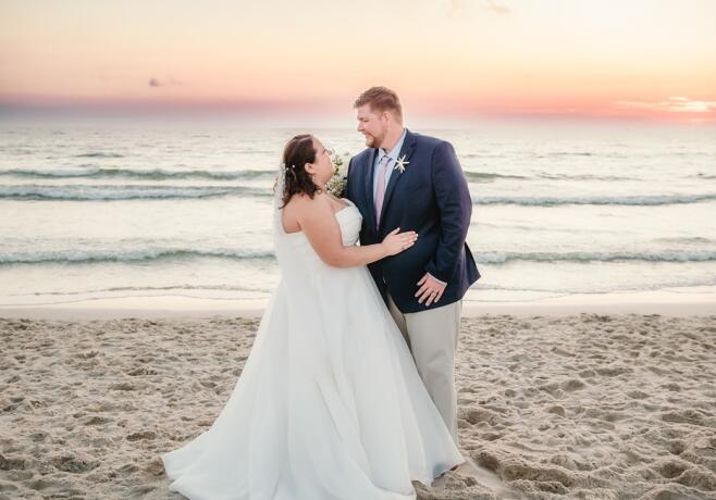 Hello! We are Scott and Abbey from Illinois. We met in March of 2021 and were engaged by July 2022. We enjoy life in the suburbs, but still have easy access to the excitement of the city. Scott is a kind-hearted gentle giant, who loves to golf and to be outdoors. Both of us love to cook and entertain for family and friends, whether that's at home or on a getaway somewhere. Abbey is so lovable and always puts others first. She loves walking our rescue pup Stella and chatting with the dog community in the neighborhood. Scott works for an international logistics company in the Ocean Export department. Abbey is a behavior analyst providing clinical support to individuals with disabilities. She works as a consultant, allowing her to make her own hours and work from home a few days a week, offering great flexibility for family time.