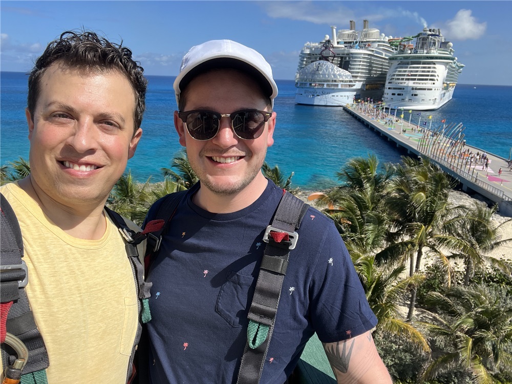 We met at a show tunes theme night in 2014, and the rest is history! Our lakeside wedding ceremony in 2017 was full of friends, family, and lots of dancing. We adopted our daughter in May 2022, and she brings us joy every single day! We are committed to giving her the best life possible and are so excited for her to be a big sister. We’re grateful to have built such a beautiful life together surrounded by people we love. We are both involved in the arts and have been able to experience firsthand the many benefits that come from spending time in a theater. Ryan now works in corporate e-learning, and Caleb teaches choir and theater at a nearby high school. We love taking weekend trips to see our parents, taking family walks, playing pickleball, and going to the zoo.