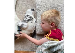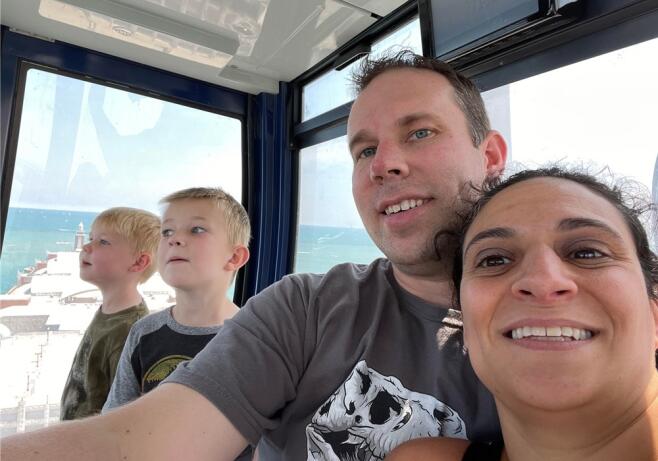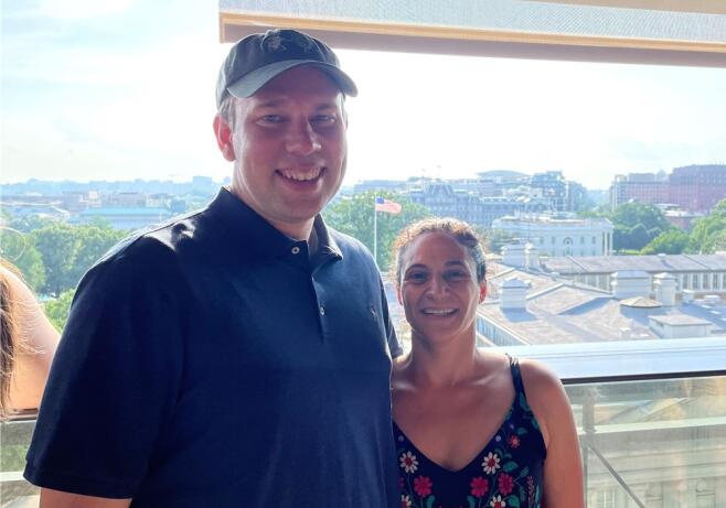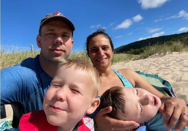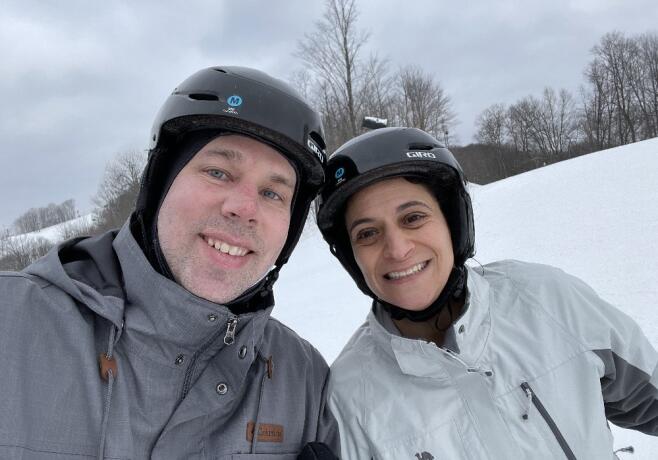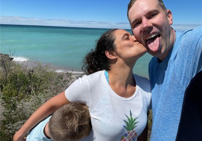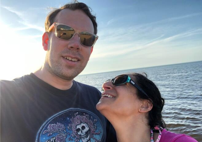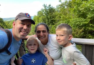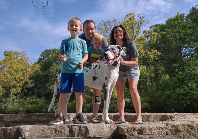 Our first date was on a Monday night. We talked for hours and walked across the street to a park for a walk under the stars. Brett was nervous, and Liz made him blush. It was the best first kiss either of us had ever had. Soon we were navigating a global pandemic while building a family together. Liz feels fulfilled by her work as a physician, while Brett loves being a father of two and his career in journalism. Brett has two children from a prior marriage. Wesley is eight. He loves baseball, math, and turtles. Maxwell is six. He loves pranks, Harry Potter, and wolves. They will make great big brothers to a younger sibling. We spend as much time together as possible, preferably outdoors with family, friends, and Sami, our sweet Great Dane.