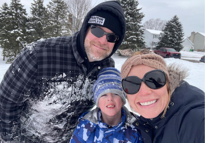 We met online 10 years ago and quickly fell in love because we shared the same values and centered our lives around our Catholic faith, family, and friends. Both of us grew up spending Sundays at church followed by afternoons at our grandparents’ homes, which shaped the way we value family traditions today. Joe is the oldest of 10 siblings, so family gatherings are always full of the best kind of chaos—lots of games, laughter, and healthy competition. Mandi, with one younger brother, feels blessed to have a large extended family of cousins who are like siblings. We now live just six doors down from Mandi’s parents, and we are grateful to see them often. Joey especially loves his weekly sleepovers at their house and all the adventures they share together. Joey attends Catholic school here in town, and we feel blessed to be part of such an amazing community. Through school, we’ve met wonderful families and built lifelong friendships. Mandi is part of a Bible study with other school moms, while Joe enjoys coaching Joey’s school football team. We love being involved and feel incredibly supported by our church, school, and community, who encourage and pray for us through every season of life.