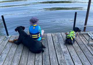 We live in a wonderful town in the suburbs that offers parades, parks, outdoor concerts, festivals, Joey’s school, and even a Catholic university—all just minutes from home. About 20 minutes away, there’s a larger city with a zoo, museums, AAA baseball, air shows, and more. Since we love exploring new places and going on adventures, we feel lucky that so much is close by. Our community has a true small-town feel, and we enjoy being active members by attending local events and volunteering. At home, we share life with our two Dobermans, Rambo and Zeus, who love coming along to the park, lake, or really anywhere we take them. They’re big snugglers and never pass up the chance to give kisses!