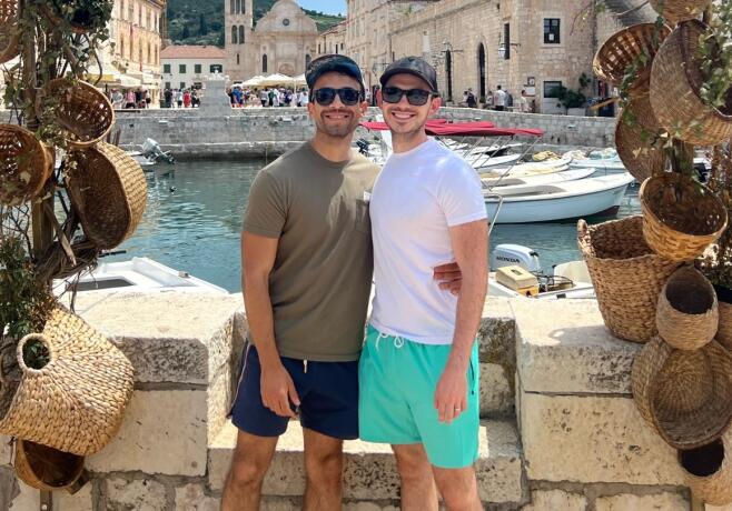 Our journey together began ten years ago. Max was a senior in college studying film production, and Mark was well into his career in public relations. Since the day we met, we’ve been inseparable. We have been blessed with loving families that have supported our love since the very beginning. We got married in 2018 at a beautiful historic theater and purchased our first home together in 2021 in Southern California. Max runs his own film production company and works as a health and safety supervisor in the entertainment industry. Mark is the director of marketing at one the largest community college districts in California. We love traveling, going to the movies, doing home improvements, cooking healthy meals, working out, and spoiling our Siberian husky, Luna. In 2023 we will celebrate our five-year wedding anniversary and look forward to growing our family.