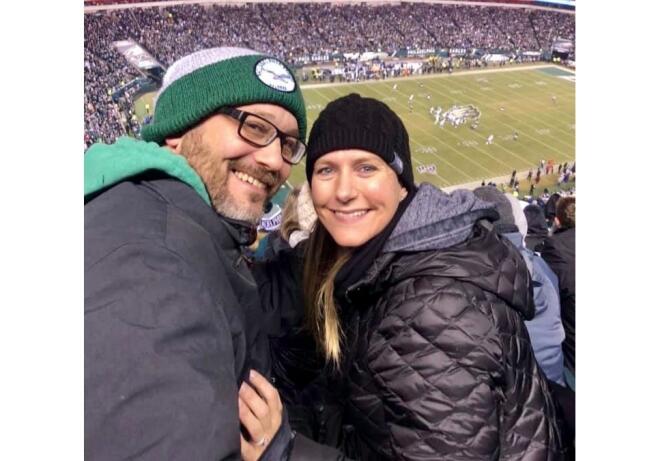 We met each other years ago in college but did not reconnect until later, fell in love, and married. We consider ourselves a fun and happy couple that enjoys each other's company. As a couple, we enjoy walking, riding bikes together, or sitting outside in the yard. We often play games with each other, whether it's board games, cards, or other competitive sporty games; we love the fun and competition. We find time to go to Phillies baseball games and Eagles football games, and we really enjoy going to venues to see concerts and performances. Luckily, we have many of the same interests, but we also like experiencing new things. One of our favorite things to do is planning trips and traveling, and we would love to include a new little passenger on our journeys!