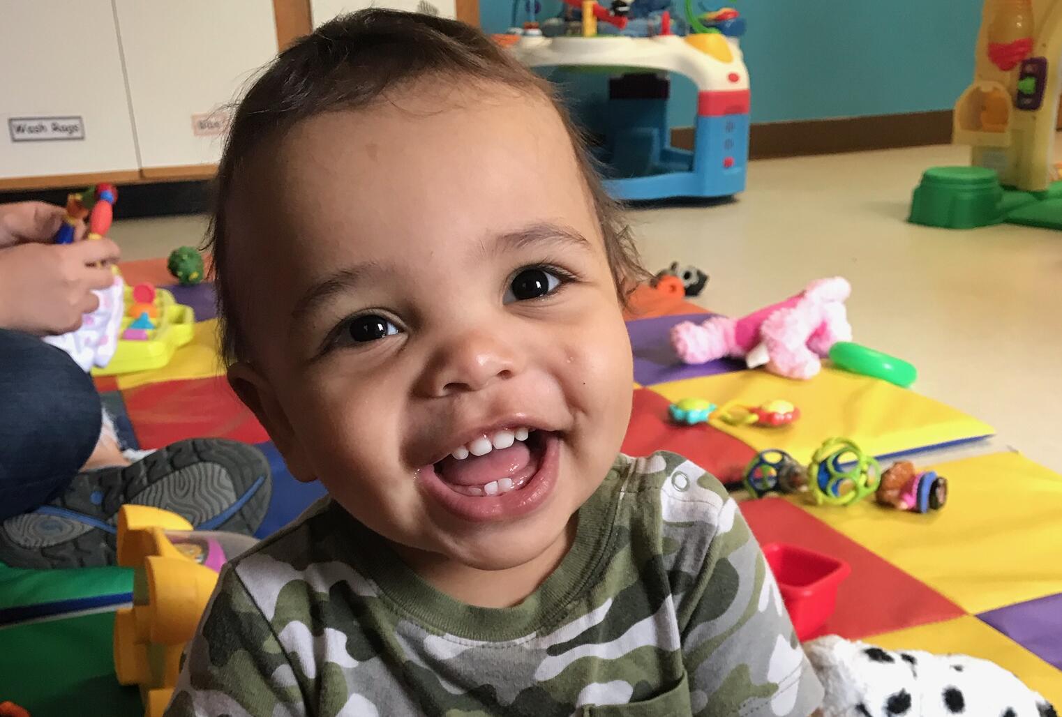 Thank you so much to Angel parents Sara & Scott for sharing this adorable photo of baby Henry! Sara also shared this with us: ""He is the cutest and his eyes light up when he smiles. We all fight over who can get him to smile. Kisses usually do it, which is good because we all can’t help but kiss him."